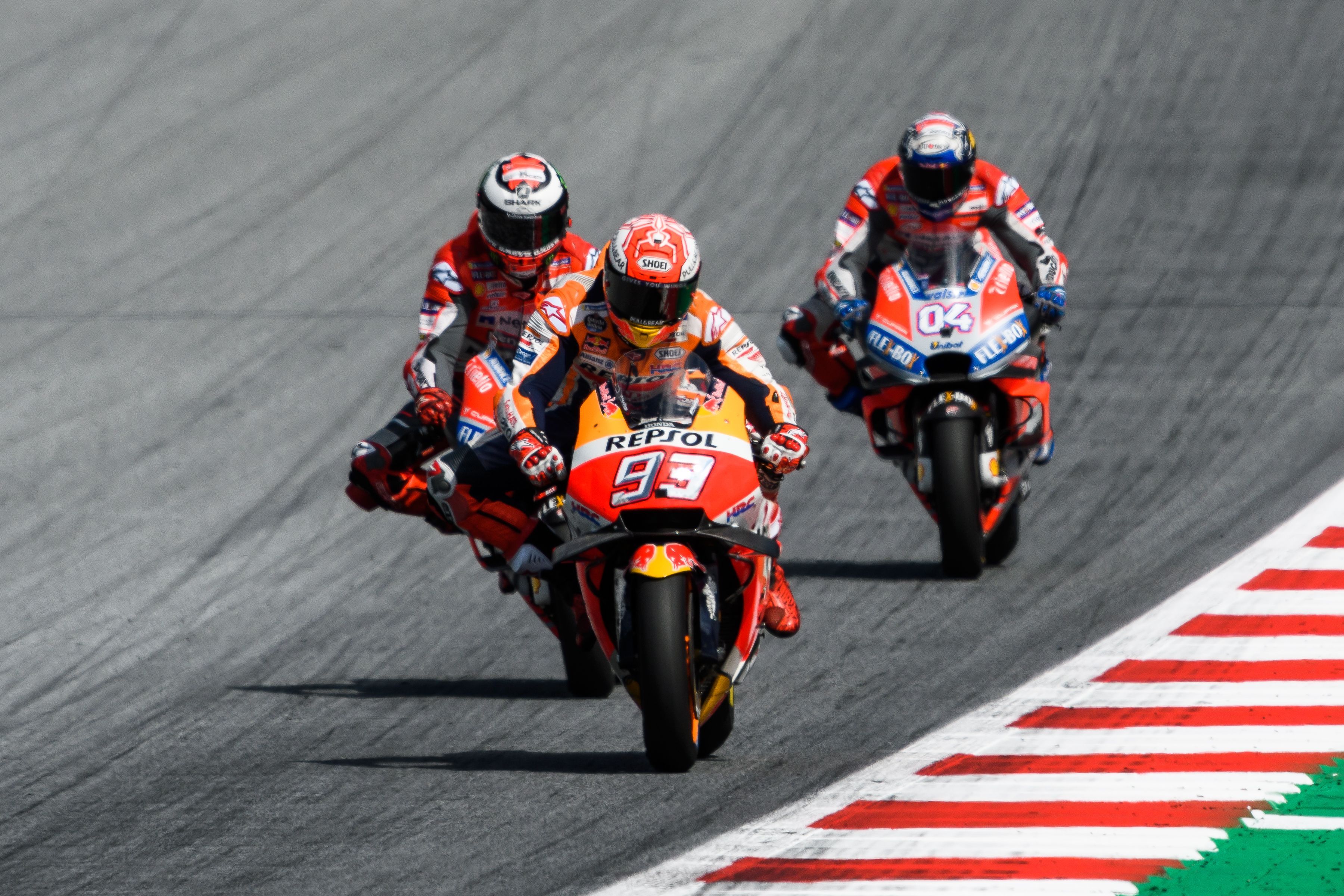 The Ducatis made a fine start and immediately started working on building a lead, knowing Marquez would have to battle his way forward before he could hunt them down.
