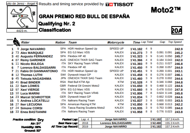 In between, a phalanx of Kalex-mounted hopefuls were all up close, with all 18 of the Q2 riders inside under eight tenths.