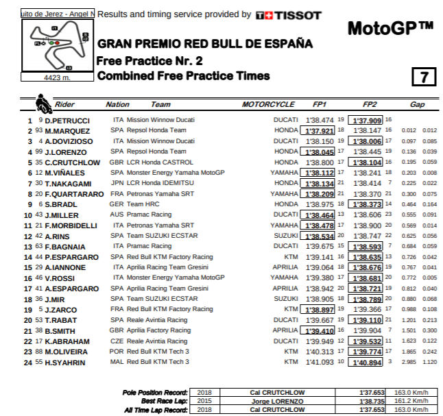 It was Mission Winnow Ducati rider Danilo Petrucci, whose afternoon time of 1m 37.909 put him just over one hundredth ahead of Marc Marquez’s morning time, at a track where in recent years the Italian bikes have struggled.