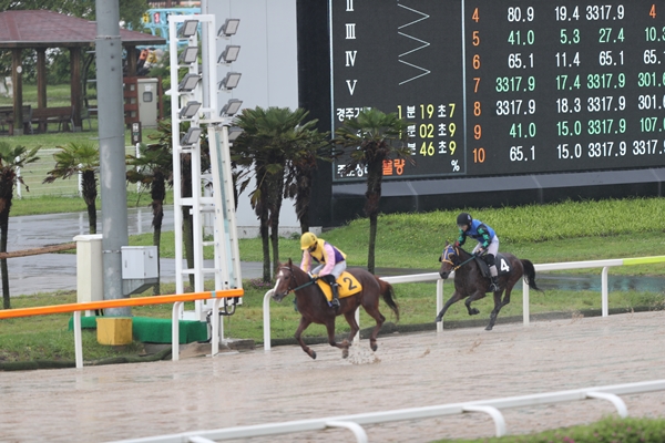 문현진 기수와 호흡을 맞춘 '오라스타'는 경주 초반 힘을 비축하며 중위권에서 경주를 진행하다 결승선 전방 약 200m 지점부터 폭발적인 추입력을 보이며 2·3위 권과의 거리를 벌여 놓으며 4마신 차이로 결승선을 가볍게 통과, 지난 넉달 동안의 휴장 아쉬움을 풀어냈다. 송은범기자 seb1119@ihalla.com