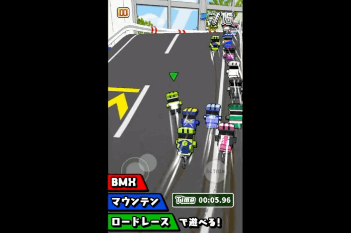 基本となる操作方法は2種類。レース開始の合図が聞こえたら、画面左のスティックをタップして自転車を漕ぎ出しましょう。そのまま指を任意の方向へ滑らせると、キャラクターも追従するようにコース内を移動。カーブを曲がる際は、気持ち早めにスティックを傾けてコーナリングしてください。