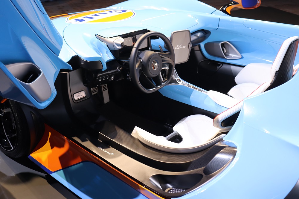 マクラーレン・スペシャル・オペレーションズのマネージングディレクター、アンサー・アリは次のようにコメントした。「McLaren Elva Gulf Theme by MSO は、マクラーレンのスポーツカーレースにおける歴史と、ガルフオイルとの新しいパートナーシップへの祝福を印象付けるものです。マクラーレン・スペシャル・オペレーションズは、“art of the possible” における可能性の領域を広げることに取り組んでおり、こうしたプロジェクトは、お客様にご提供可能なパーソナライゼーション・オプションの範囲がますます広がっていることを示しています。今回は、ガルフ・ブランドのロゴをデザインに組み込むことで、由緒正しいカラーリングであることを強調しています」